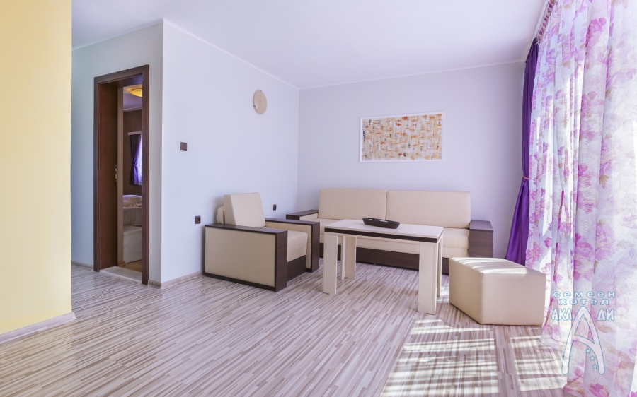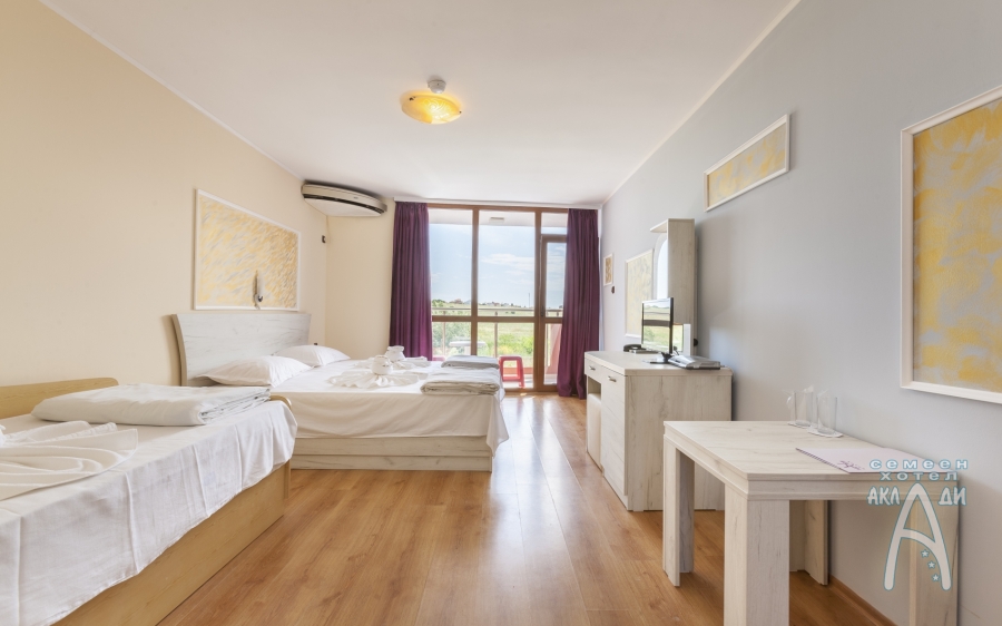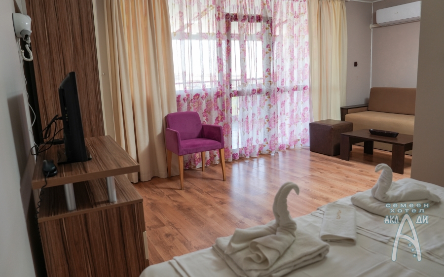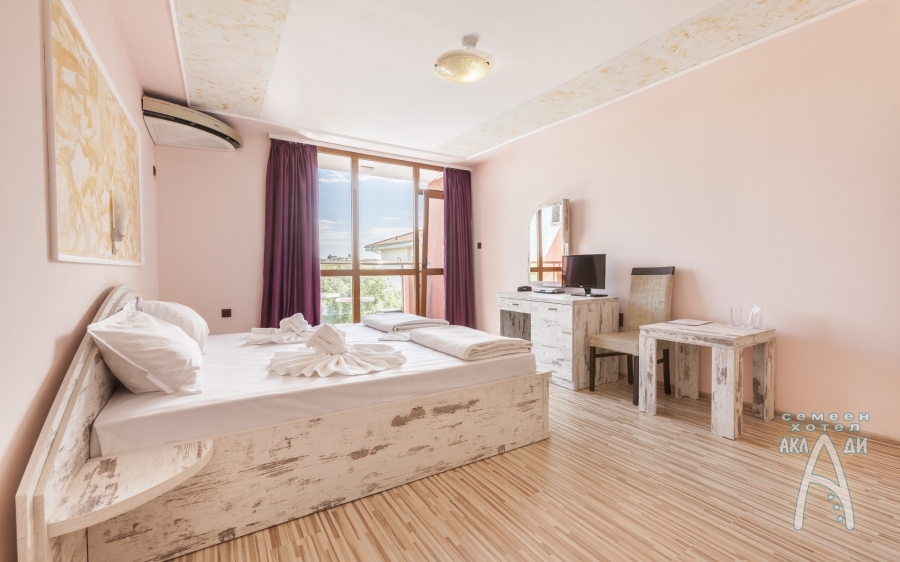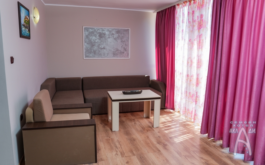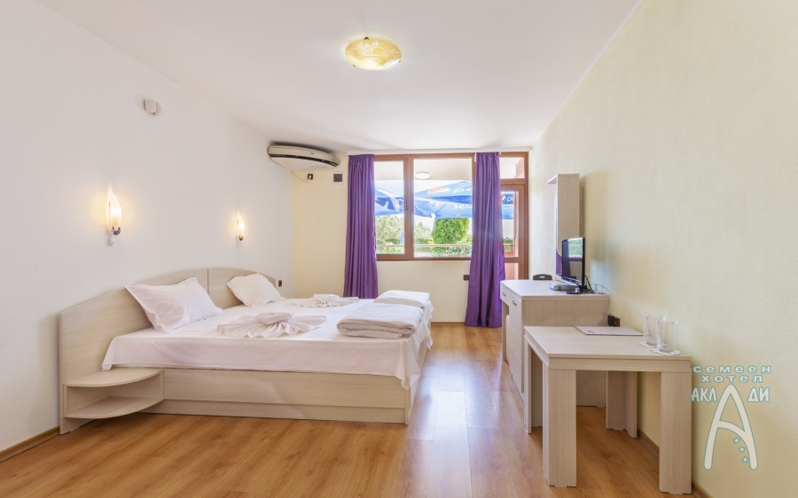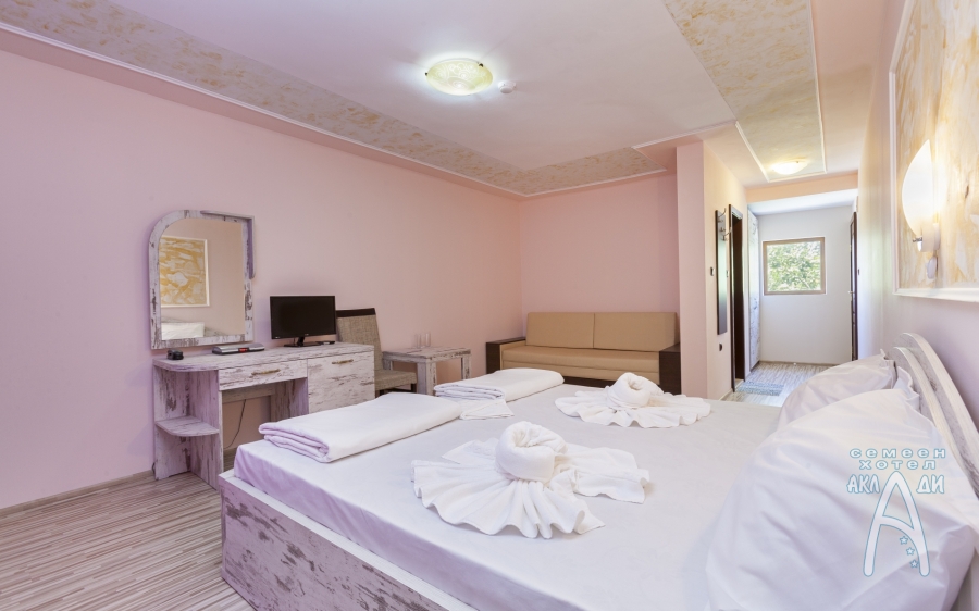 Семеен хотел „Аклади” разполага с 14 стаи, 2 апартамента и 1 панорамно студио. Всички помещения за настаняване са със собствен санитарен възел, хладилник, телевизор с плосък екран, интернет, климатик, кът за сядане и балкон с изглед към градината. В почти всички налични стаи има възможност за добавяне на допълнително легло.