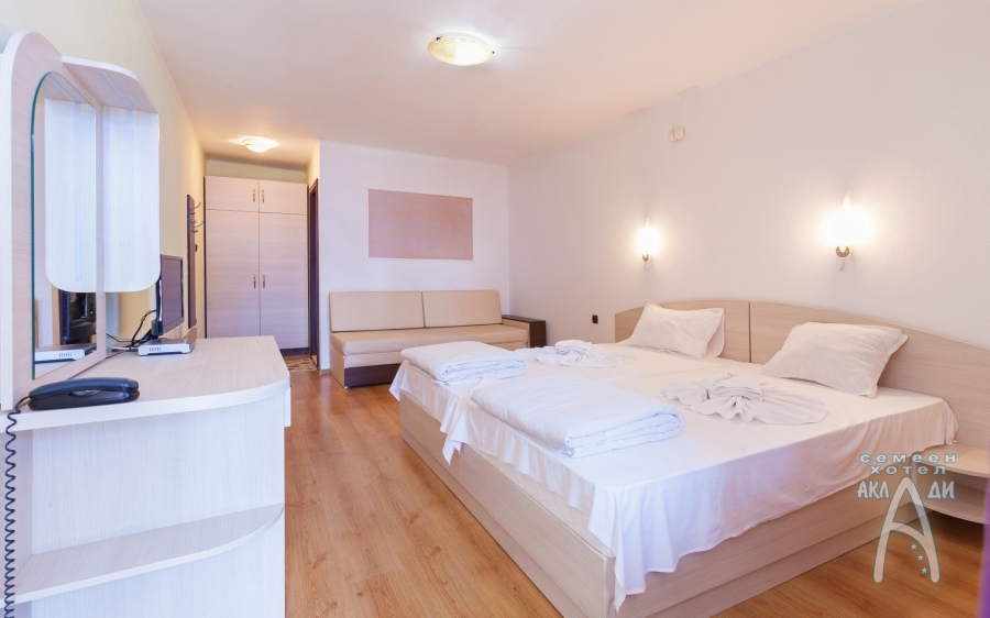 Семеен хотел „Аклади” разполага с 14 стаи, 2 апартамента и 1 панорамно студио. Всички помещения за настаняване са със собствен санитарен възел, хладилник, телевизор с плосък екран, интернет, климатик, кът за сядане и балкон с изглед към градината. В почти всички налични стаи има възможност за добавяне на допълнително легло.